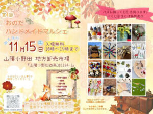 11月15日の土曜日は、山陽小野田地方卸売市場で開催される「おのだハンドメイドマルシェ」に出店します☆